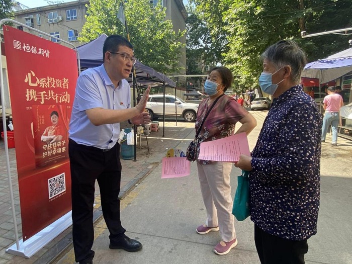 為進(jìn)一步深入貫徹落實(shí)處置非法集資部際聯(lián)席會(huì)議相關(guān)工作要求,根據(jù)河北省打擊和處置非法集資工作領(lǐng)導(dǎo)小組印發(fā)的《2023年防范非法集資宣傳月活動(dòng)動(dòng)作方案的通知》,2023615日,國(guó)富投資集團(tuán)所屬恒銀期貨有限公司(以下簡(jiǎn)稱“恒銀期貨”)聯(lián)合東風(fēng)派出所,恒銀期貨總經(jīng)理湯志江、副總經(jīng)理張南組織公司各部門骨干力量深入社區(qū),開(kāi)展了防范非法集資的線下宣傳活動(dòng)。