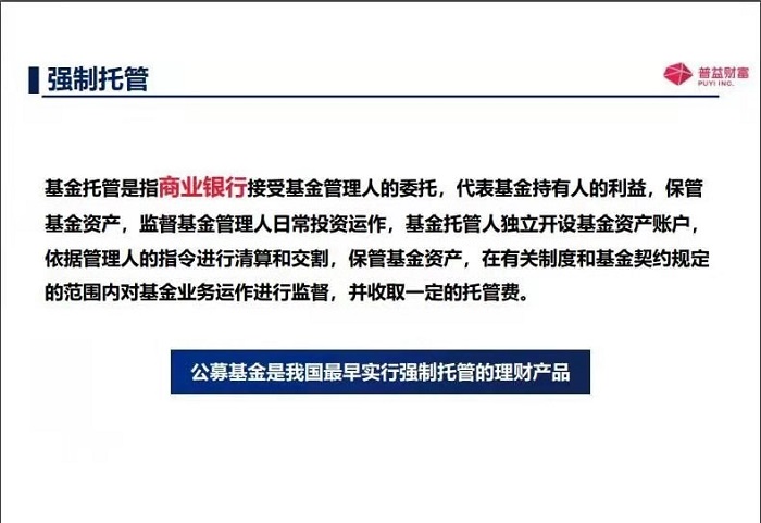 那另外一個(gè)呢,基金投資人就是咱們普通老百姓,也是基金投資人呢,還有機(jī)構(gòu)投資者,那另外一個(gè)就是基金托管人,就是來保管著咱們資金的安全的就是基金托管人,第一班是有商業(yè)銀行或者證券公司,他們還必須得有托管的資質(zhì),當(dāng)然了,還有基金代銷機(jī)構(gòu),也就是去銷售基金的,比如說一些商業(yè)銀行呀,證券公司呀,期貨公司呀,還有一些第三方的獨(dú)立的基金代銷機(jī)構(gòu),像咱們的普益基金就是基金代銷機(jī)構(gòu)。