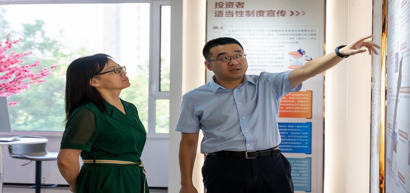活動伊始,恒銀期貨總經(jīng)理湯志江帶領(lǐng)和講解下,河北經(jīng)貿(mào)大學(xué)副校長杜紅梅、金融學(xué)院黨委書記魏健、金融學(xué)院院長楊雪美、金融學(xué)院黨委副書記王薇、金融學(xué)院副院長竇麗琛、金融學(xué)院就業(yè)工作負(fù)責(zé)人高鵬飛等一行領(lǐng)導(dǎo)參觀了恒銀期貨總部的辦公區(qū)和恒銀期貨投資者教育基地,深入了解了公司的組織架構(gòu)、業(yè)務(wù)模式、企業(yè)文化、發(fā)展戰(zhàn)略及黨建扶貧等工作。通過參觀,經(jīng)貿(mào)領(lǐng)導(dǎo)對于恒銀期貨的辦公環(huán)境、業(yè)務(wù)模式和發(fā)展前景給予了高度評價。