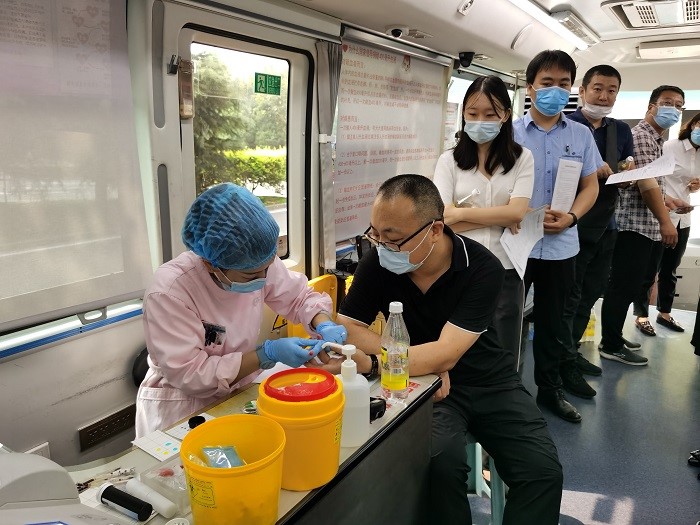 2021年8月13日上午,“河青號(hào)”愛(ài)心獻(xiàn)血車開(kāi)進(jìn)了國(guó)富投資集團(tuán)總部,雖然烈日炎炎,驕陽(yáng)似火,卻仍阻擋不住干部職工傳遞愛(ài)心的熱情?;顒?dòng)現(xiàn)場(chǎng),30余名職工代表在醫(yī)護(hù)人員的引導(dǎo)下,依次填寫(xiě)登記表、測(cè)血壓、抽血化驗(yàn)、采集血樣,整個(gè)過(guò)程秩序井然。獻(xiàn)血隊(duì)伍中既有黨員干部,又有普通職工,既有剛剛?cè)肼毜那嗄陠T工,也有工作多年的老同志,他們用同樣的方式表達(dá)著自己的愛(ài)心,奉獻(xiàn)著自己的真情。最終共22名符合條件的職工獻(xiàn)血成功,獻(xiàn)血總量達(dá)6800CC,他們用滴滴熱血詮釋了奉獻(xiàn)精神,凝聚了赤誠(chéng)之力,承載了生命希望,為省會(huì)無(wú)償獻(xiàn)血事業(yè)再次貢獻(xiàn)力量。